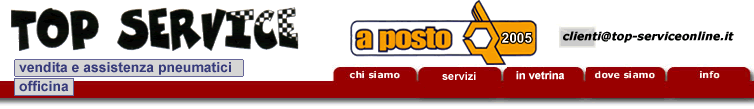 Fin dalla sua nascita Top Service svolge l'attività di officina specializzata nella vendita e assistenza di pneumatici di marche come: Michelin, Pirelli, Dunlop, Goodyear e Bridgestone; è inoltre esclusivista di zona per Continental, Barum e Toyotires.